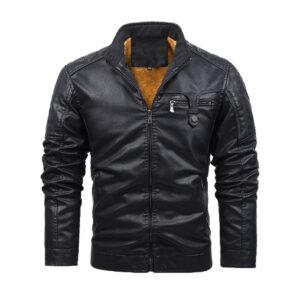Plus Fleece Decorative Zipper Leather Jacket (DTF)
